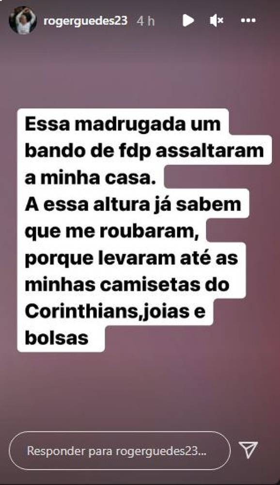 Roger Guedes ainda postou uma carinha de furioso para expressar seu sentimento de tristeza e raiva com o ocorrido. Ele não revelou o valor do prejuízo no roubo.
