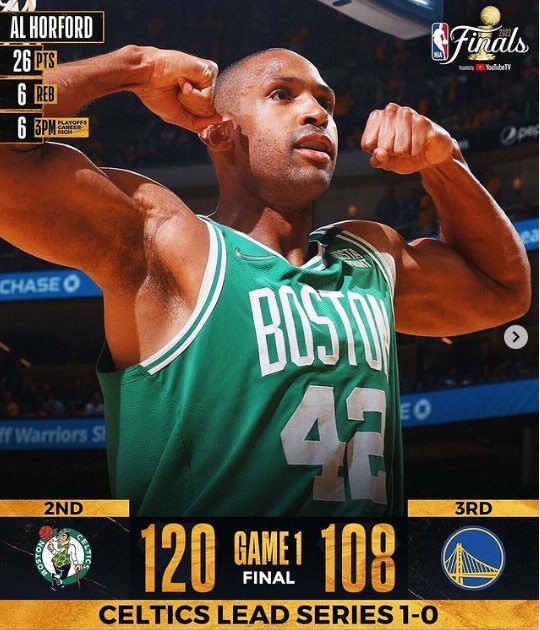 Na primeira vez que a cidade de São Francisco recebeu um jogo de final da NBA, o Boston Celtics bateu o Golden State Warriors por 120 a 108 e largou na frente no primeiro jogo das finais. Nem mesmo os 34 pontos de Stephen Curry, cestinha da partida, bastaram para conter o ímpeto da equipe de Ime Udoka no primeiro jogo da série.
