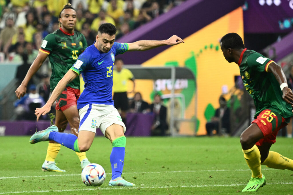 Cartões amarelos: Éder Militão e Bruno Guimarães (BRA) e Tolo, Fai, Kunde e Aboubakar (CAM)