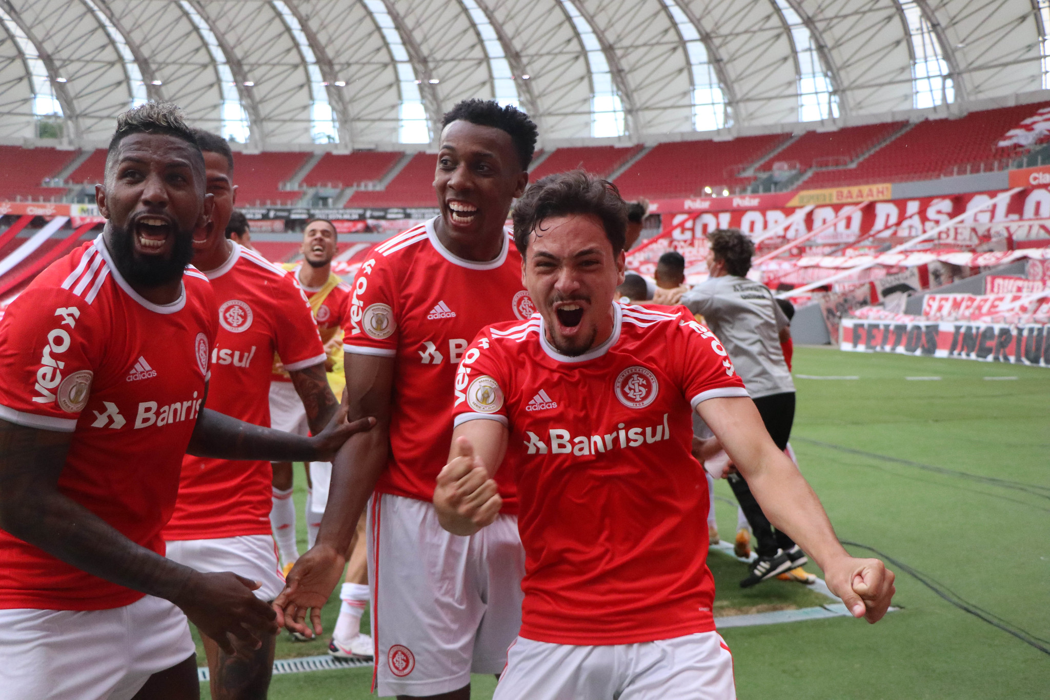 E não acabou aí. Edenilson tentou a cabeçada e viu a bola bater no peito de Kannemann e depois no braço. O árbitro paulista Luiz Flávio de Oliveira assinalou pênalti. O próprio volante foi para a cobrança e confirmou o triunfo do Internacional, aos 52 minutos.