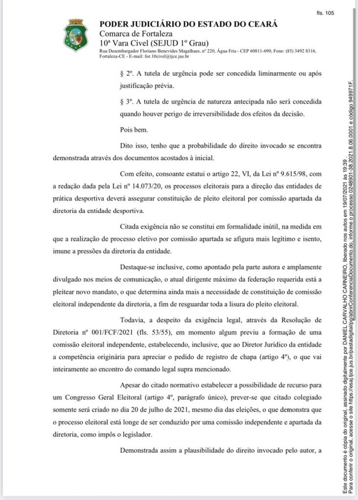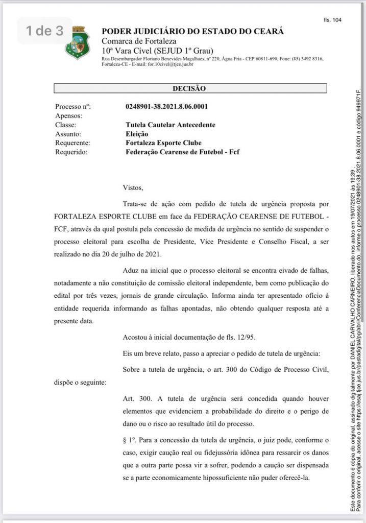A 10ª Vara Cível de Fortaleza suspendeu, nesta segunda-feira (19), as eleições na Federação Cearense de Futebol. A medida atende pedido do Fortaleza Esporte Clube, que acionou a Justiça comum por entender que o processo eleitoral não está em conformidade com a Lei Pelé.