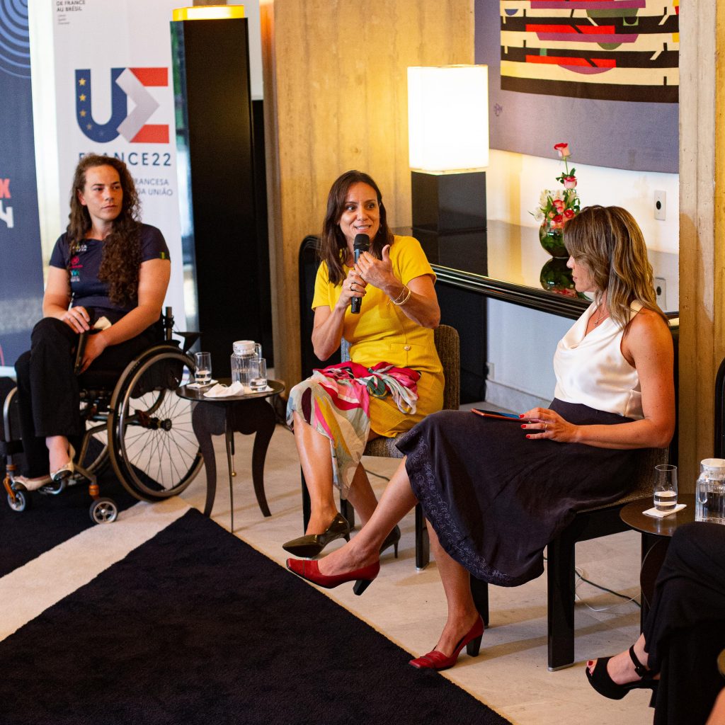 Antecipando o clima dos Jogos Olímpicos de Paris 2024 e em comemoração ao Dia Internacional das Mulheres, a Embaixada da França promoveu um debate sobre a igualdade de gênero no esporte. Em torno de uma mesa redonda, no dia 8 de março, mulheres que vivenciam o esporte cotidianamente compartilharam suas experiências e apresentaram a evolução de suas carreiras. Os avanços ao longo dos anos e os obstáculos ainda a superar estarão no centro do debate.