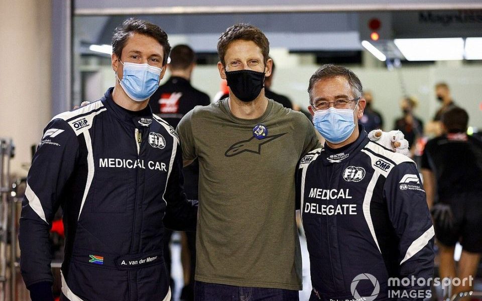 Torcida De volta ao paddock, Grosjean se emociona ao encontrar médicos que o socorreram 03/12/2020 16h01