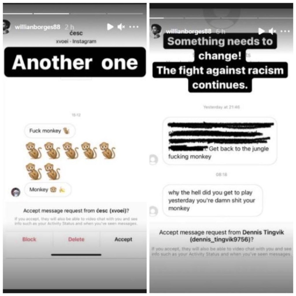 O meia-atacante Willian, do Arsenal, denunciou nesta sexta-feira diversos ataques racistas que sofreu nas redes sociais nas últimas horas. Em seu perfil no Instagram, ele publicou as ofensas e fez um breve desabafo: “Algo precisa mudar! A luta contra o racismo continua”.