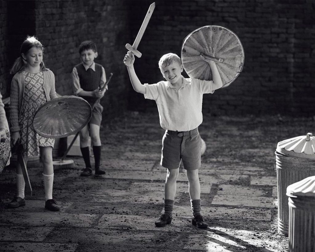Vamos em frente, ver o que vem por aí. Agora, câmera na rua de Belfast, em 1969, imagens em preto e branco. Uma rua pacífica, onde meninas pulam e meninos jogam bola. Crianças brincam e os adultos se cumprimentam amigavelmente.