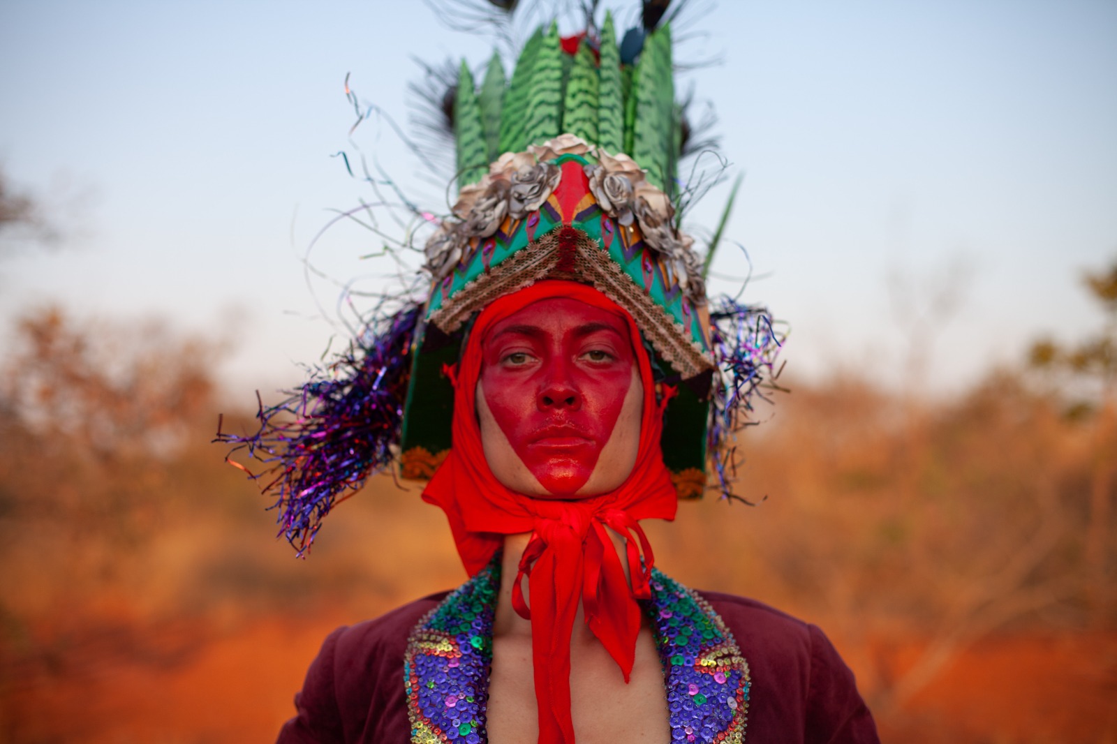 Kátia Flávia Luisa Mell, a “Mística da COP30”, pinta o corpo de planeta Terra e protesta contra cardápio “carnívoro” do evento