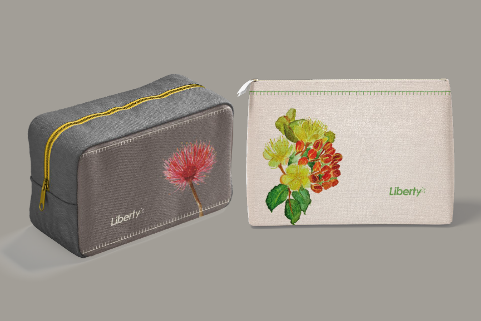 Elaborada pela Aurora Decor, especialmente para a campanha do Liberty Mall, a nécessaire da coleção Flores do Cerrado traz os desenhos em aquarela da artista de apenas 16 anos Anita Celidônio, que buscou enaltecer nas peças a sutileza de cada flor, entre elas, flor de ipê, flor de pequi, canela de ema, caliandra.