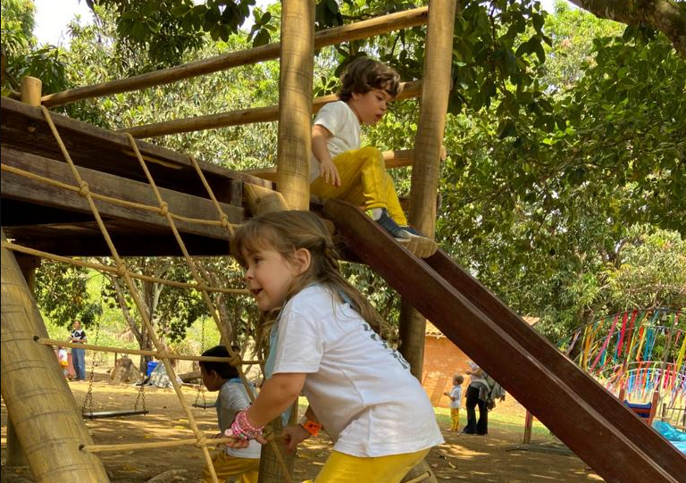 A escola Eleva Brasília e a Fazendinha Azul montaram uma colônia de férias totalmente ao ar livre, com brincadeiras e contato com a natureza, para crianças de 3 a 10 anos. A colônia acontece de 17 a 21 de julho, e alunos de outras escolas também podem se inscrever.