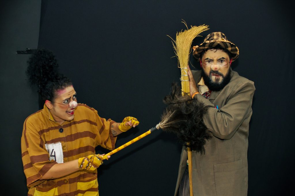 Os dois personagens da trama surgem como caricaturas, que através da gestualidade dos dois atores, desenham no palco situações tragicômicas repletas de simbologias. O espetáculo apresenta elementos técnicos e estéticos em sua encenação que se aproximam da realidade vivida por populações pobres de qualquer parte do Brasil e da luta diária pela sobrevivência em uma sociedade desigual e repleta de contradições. Com base no princípio da palhaçaria, onde rir de si mesmo e de suas mazelas torna-se conteúdo, criou-se um ambiente propício para transgredir o imaginário social que estigmatiza essas personas tão presentes no cotidiano do nosso país.
