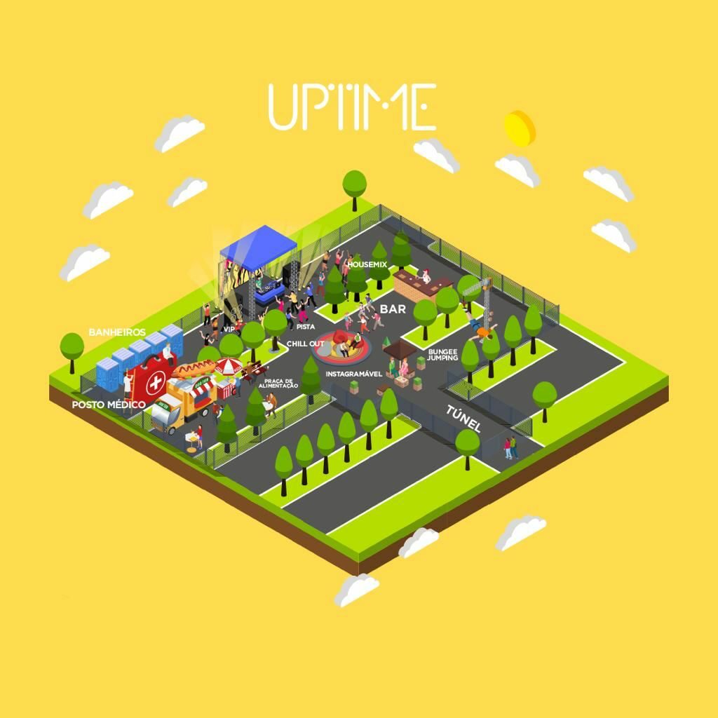 O UP Time Festival vai contar com projeções em 3D em painel de LED de 8 metros, camarote, lounge com área de descanso, praça de alimentação, bares e banheiros, entre outras surpresas.