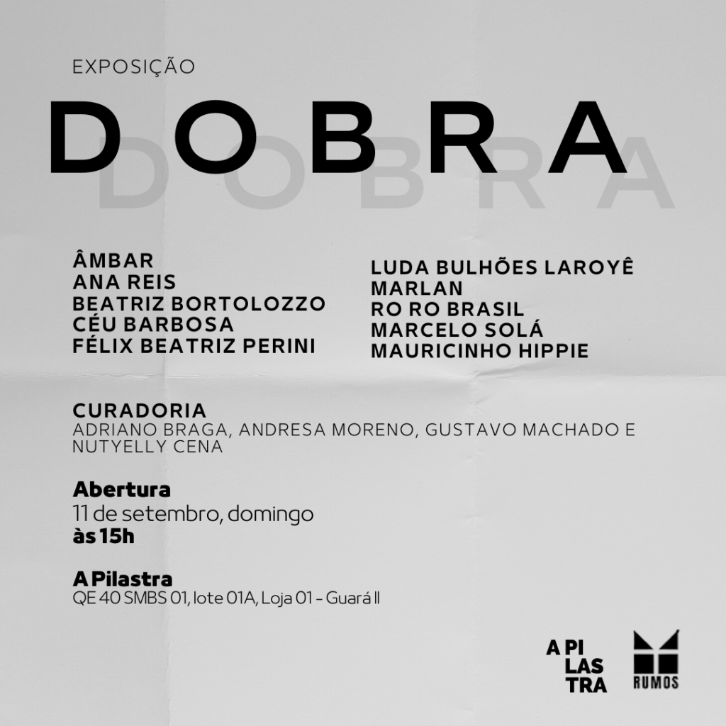 A galeria e escola de cultura A Pilastra e o grupo Rumos, de Goiânia-GO, promovem a exposição itinerante “DOBRA” a partir das 15h deste domingo (11). A visitação fica disponível até o dia 30, na sede da Pilastra, no Guará II.