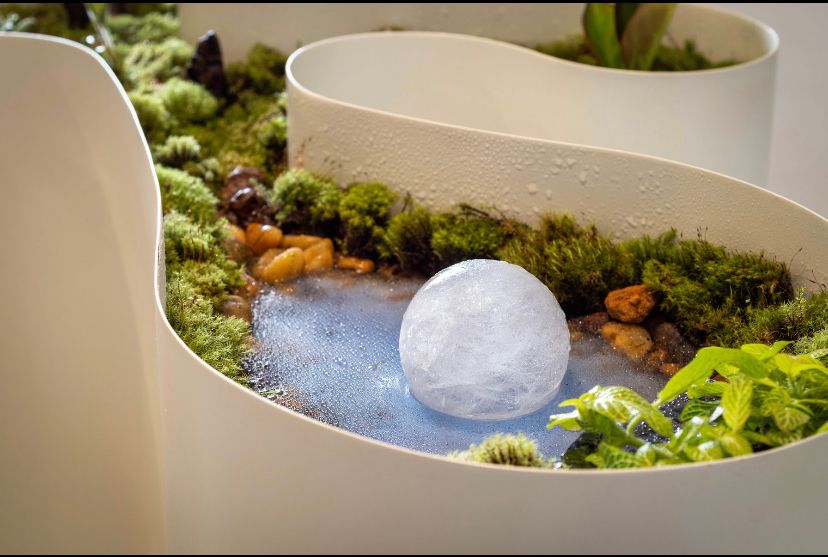 O escultor nascido no Rio de Janeiro e criado em Brasília parte justamente do diálogo com as curvas modernistas do arquiteto para apresentar a capital do país como referência de uma Nova Era. Rogério Reis define sua linguagem como escultura fluida. Na exposição, cada escultura temática é associada a um dos monumentos da cidade. Uma escultura de cinco metros foi instalada na entrada do espaço em homenagem à Niemeyer. No salão, as obras estão agrupadas por temas: Gaia, Jasper Terral, Canto das Três Raças, Luna, Pytuna Ibak, Pele Preta, Pendulum, Turmalina Negra, Iemanjá e Void Corten.