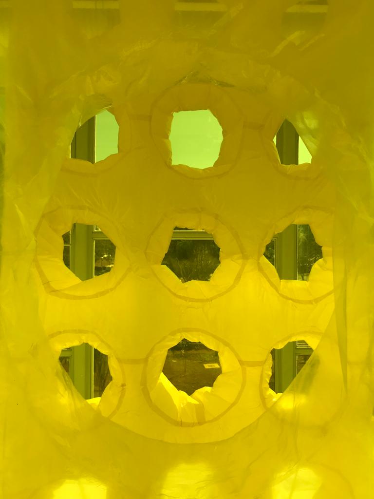 Numa das instalações do artista, o efeito físico causado pela refração de luz causa um certo desconforto visual. Nela, uma parede de vidro foi revestida de amarelo com piso branco acentuando fortemente a fotossensibilidade nos olhos do espectador.