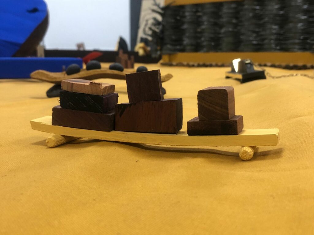 A apropriação de materiais urbanos é outra característica da exposição, como se nota nas obras de Cecília Lima. A artista recolhe, durante caminhadas pela cidade, madeiras usadas na construção civil, pregos, papelão e outros elementos que compõem suas esculturas e instalações. A inspiração para as obras criadas para a mostra vem do cotidiano da artista. “Meus trabalhos têm uma relação com o deslocamento entre Brasília e o restante do Distrito Federal. São peças que surgiram de cenas que observei indo para Taguatinga pela via Estrutural, cruzando a cidade entre São Sebastião e o Plano Piloto, entre outros caminhos”, conta.