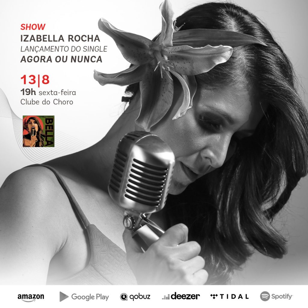 Rocha apresenta, neste 13 de agosto, mais uma música do álbum “Bella”, durante show no Clube do Choro e através das plataformas digitais. “Agora ou Nunca”, uma versão de Izabella para a canção “Now or Never”, de Billie Holiday, é o sétimo dos nove singles que compõem o segundo trabalho solo da cantora, e o 10º álbum de sua trajetória.
