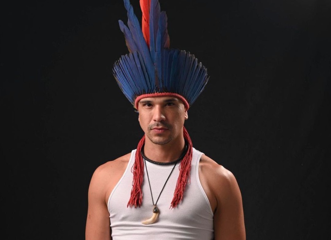 Kátia Flávia Luisa Mell, a “Mística da COP30”, pinta o corpo de planeta Terra e protesta contra cardápio “carnívoro” do evento