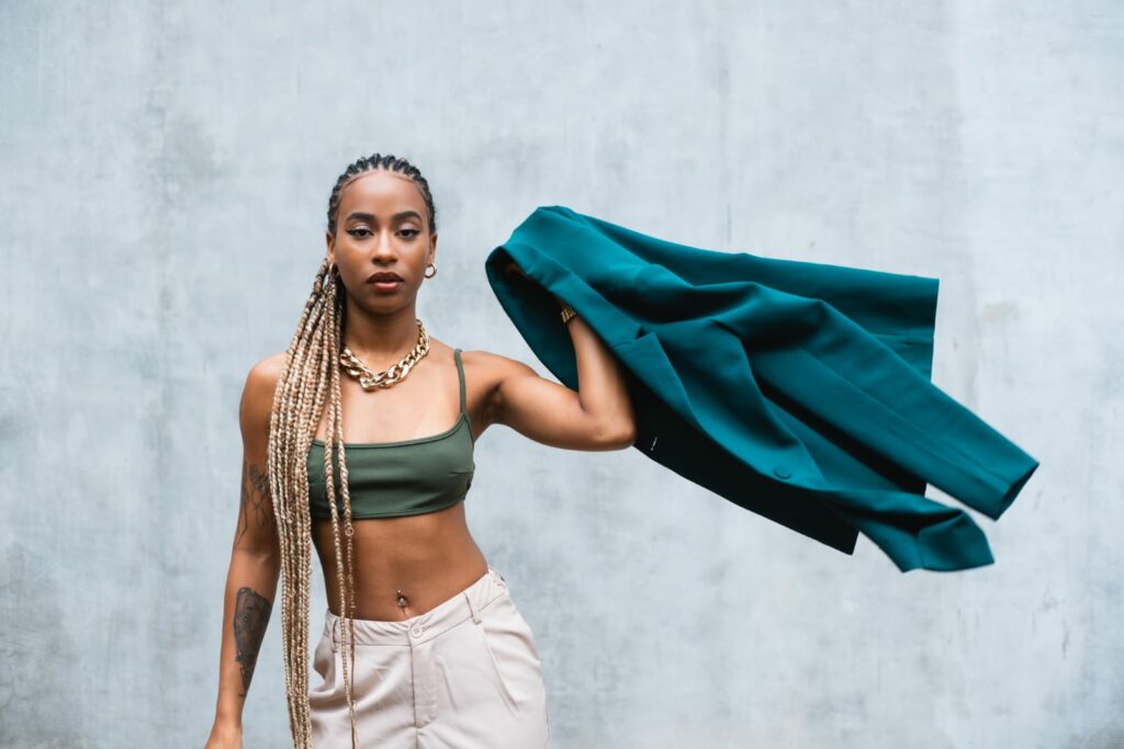 A minha identidade artística vem sendo construída a partir desse olhar que eu tive nessa época da minha infância para o cenário internacional. Ainda é desafiador imaginar a minha própria personalidade artística, sabendo da realidade do nosso país. Mas fico muito feliz em ver que as coisas têm mudado. Nos últimos anos, eu tenho consumido muito os sons de IZA e Ludmilla, que são artistas que têm conquistado esse espaço e que me mostram formas alternativas de como pensar em ser artista nesse contexto nacional. E sabendo de todos os desafios que é ser uma mulher preta, não só para um artista, mas em qualquer carreira que a gente venha a seguir, sempre vai ser desafiador fazer o que a gente faz.