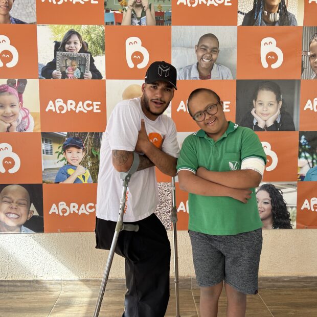 Samuka recebeu o convite para atuar como embaixador da Abrace com muito carinho. “Depois de superar todo o tratamento de câncer, sempre tive um débito em meu coração alimentado pelo desejo de poder fazer mais pelas pessoas que sofrem com o que eu já sofri”, conta. Ele, que já tinha vontade de visitar a instituição, aproveitou sua vinda ao Brasil para matar a saudade da família e comparecer à Casa de Apoio, no Guará II. “É uma realização pessoal enorme me tornar referência para essa galera e, futuramente, poder ajudar de todo jeito que puder”, garante.