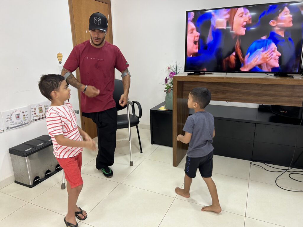 Os dois vieram de Roraima para dar seguimento ao tratamento na Abrace. “Eu me emocionei com o relato da mãe dele também, porque é a mesma história de vida que a gente está passando. E eu falo para as meninas: olha, vocês estão nessa fase, mas vai melhorar. Tudo isso vai passar”. Daniel se enturmou com Samuka desde o início do evento. Hoje, o menino está fazendo acompanhamento médico e os resultados estão sendo bastante positivos. “Ele é um milagre de Deus para mim”, completa Nayara.